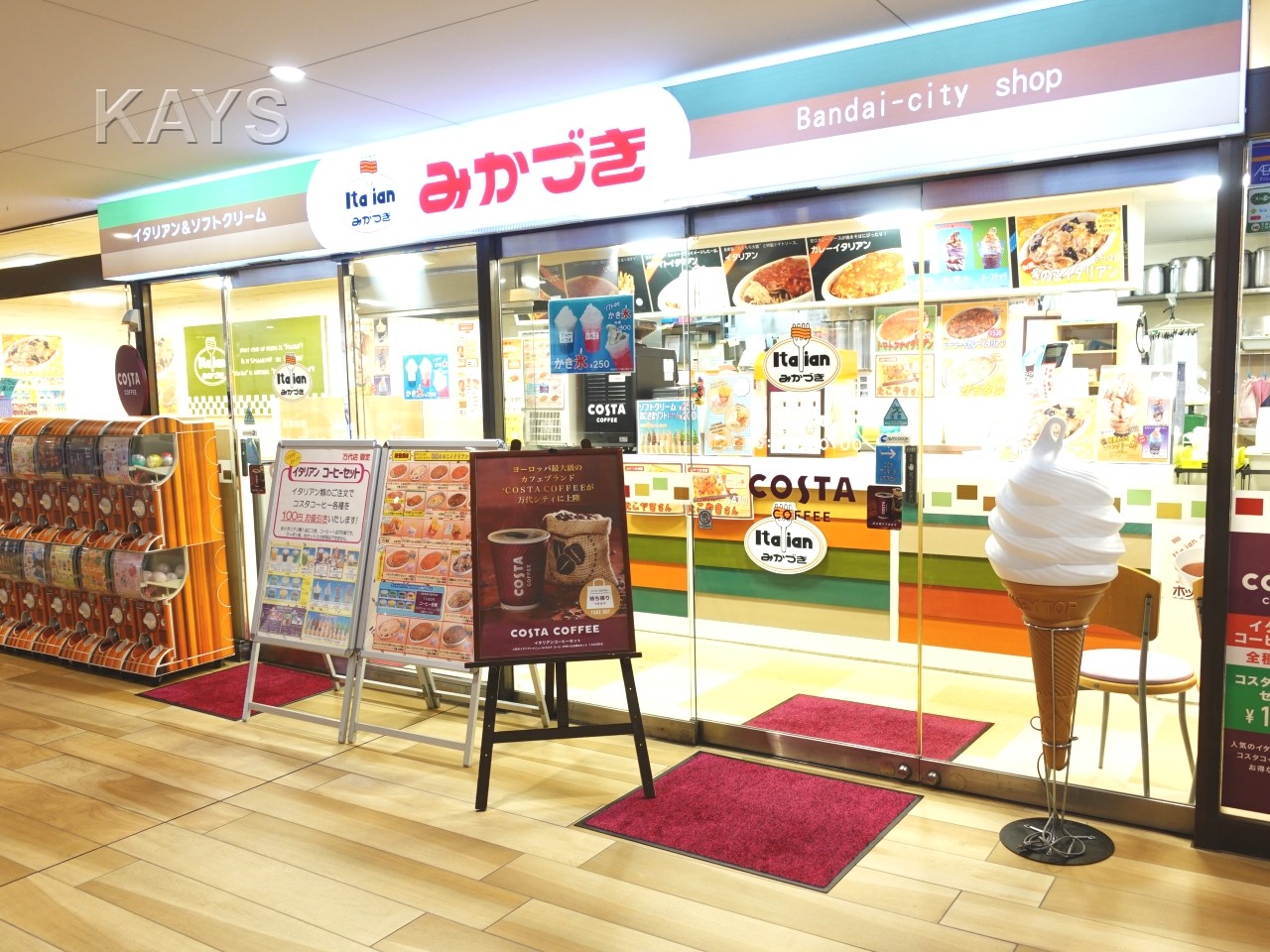 味のスジからの順序はまず「イタリアン」でそれから「カレー」だな……と考え、まずはエスカレーターで2Fへ。すぐに見えた「みかづき」。地元のチェーン店です。中学生や高校生が喜びそうなハンバーガーショップのような外装と内装。もともとの出発点が甘味処だったということなので、ソフトクリームなどもウリのようです。