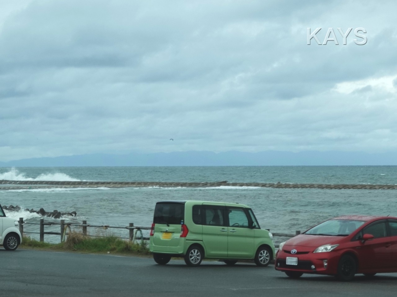 まさか……と、あわてて地図で確認しますが、海の向こうの陸地はやはり佐渡島のようです。生まれて初めて見る佐渡島の巨大さにビックします。私の故郷の島根県には隠岐の島という大きな島がありますが、島後と呼ばれる島は沖合80キロ先にありますから、めったに姿を見ることが出来ません。それに比べれば近いとはいえ、こんな雨の日でも見えることがあるのですね!これは神様からの思わぬ贈り物でした。