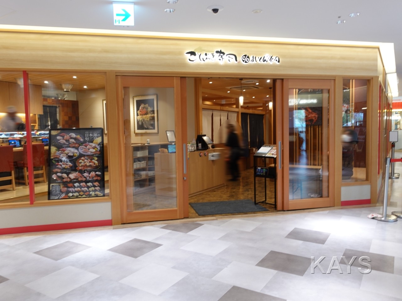 回転寿司といってもさすが日本海の幸に恵まれる新潟。駅ビルのCoCoLoの中に素敵なお寿司を提供するやや高級な回転寿司があることはすでに調査済み。「ことぶき寿司c/oまいもん寿司」というお店で新潟の「ことぶき寿司」と金沢の「まいもん寿司」がコラボしたお店で人気があります。土日などは行列ができると聞いていますが、今日は平日、しかも昼食の時間は終わっています。お店は空いており、すんなりと入れました。