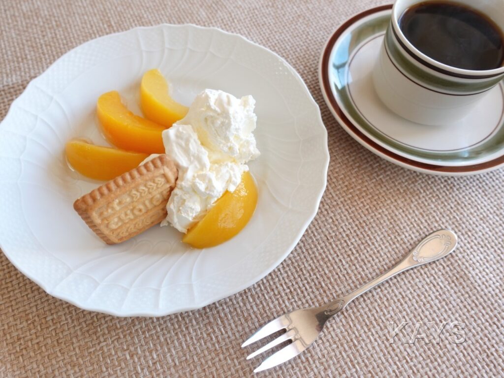 しかも、値段は生クリームが100ccで300円低度。今回フルーツは黄桃の缶詰(400円低度)を利用。2人分あわせて700円。つまり一人350円の計算。