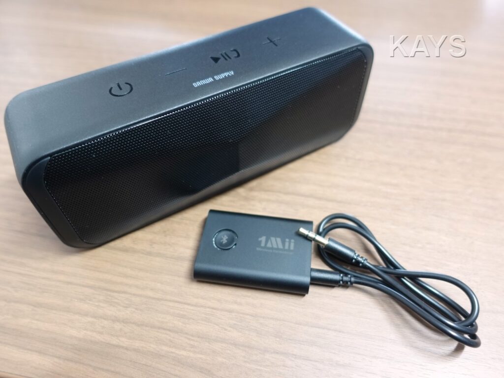 送信機に関しては「1Mii」というブランドの Bluetooth トランスミッター 「ML301」です。アマゾンのレビューを見ると比較的高評価です。値段も3,000円を切る価格。もし今回の目的に合致しなくても、受信機としても使えますから、オーディオで何かしら別の用途でも使えそうです。